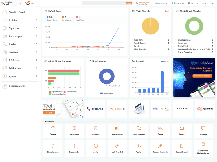 T-Soft e-ticaret çözümlerini ve ayrıcalıklarını denemeniz için; size özel online satış sitenizi Gerçek Ortamda kuruyoruz, 30 Gün Boyunca Ücretsiz Deneme Fırsatı sunuyoruz.